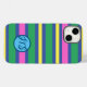 Utmärkt rosa, grönt, gult och blått rand fyller detta färgstarka iphone case. Lägg till ditt monogram för att anpassa fodral och göra anspråk på det som ditt eget.