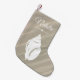 Den eleganta vitsnäckskalsilhouetten och sanddynjulstrumpan med anpassningsbarnamn i vit skrivar.