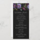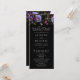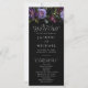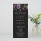 Elegant stämningsfull blommig bröllopsprogram med en övre kant av lila och vinröda blommor, frodig grön lövverk och mörka bär. Det lila blommiga bröllopsprogrammet kompletteras av elegant, modern typografi. Anpassa framsidan av det gotiska blommiga bröllopsprogrammet med era namn, bröllopsdatum och plats samt ceremonins ordning. Programmets baksida visar en lista över er bröllopsfest. Designad för att samordna med vår Moody Gothic Floral bröllopssamling.