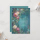 Skapa en förtrollande ton för din fest med detta mästerverk av stämningsfull botanisk konstnärskap. Kompositionen visar upp levande magenta kluster av pionblommor och krämiga elfenbensfärgade rosenblad, sammanflätade med ömtåliga blå vildblommotiv och eleganta gyllene virvlande vinaccents. Alla dessa organiska element är satta mot en rik, djupt texturerad teal akvarellbakgrund som har en drömlik, impressionistisk känsla med subtila antydningar av plommon och violett. Denna bröllopsinbjudan är ett förstahandsval för en stämningsfull vinterfest, en fantastisk vårträdgårdsgala eller en konstnärlig skogsceremoni. Den säkerställer att dina evenemangsuppgifter ramas in med en k