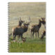 Anteckningsbok med Älgflock vid vattensamling. När sommaren blir varmare och sloughs börjar krympa samlas älgarna vid de återstående dammarna för att dricka och äta den frodiga gröna bladverket. För att skydda sig från horderna av myggor och bitande flugor som lever i de våta områdena kommer de att rulla sig i leran.