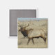 Tjur Elk Magnet. Stor tjur älg stoltserar över de sena vinterängarna.
