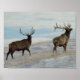 Tjurälg Lucky 13 tjur affisch. Den ledande tjuren med tretton horn, sex på ena sidan sju på den andra, är sannolikt det äldre av paret, vilket indikeras av hans hängande buk.