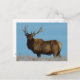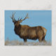 Tjurälg vykort. En stor vacker tjurälg spanar ut över sin omgivning från en kulle på den södra Alberta-prärie under en perfekt blå vinter himmel.