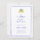 Vi presenterar vår fantastiska inbjudningskort för möhippan för den slutliga Italien firande! Den här inbjudan innehåller kalligrafi av elegant blå, perfekt parad med en liten illustration av citron gren, som skapar en sofistikerad och chic design. Baksidan av inbjudan är inspirerad av klassiska italienska blå plattor, som lägger till en elegans i extra och transporterar dig rakt till Italiens pikturesska gator.