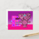 Cute tecknad Elephant med alfabet brev E i skuggor av rosa och lila, vykort.