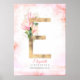 E Bokstav Monogram Guldblad Rosa Magnolia Blommig Poster