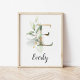 E Bokstavsmonogram Greenery Barn Namn Väggutskrift Poster