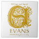 E Guld Monogram på vit - Namn Bröllop Datumpanel Kakelplatta