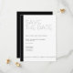 Designat att samordna med vår EMILY-samling är detta Spara datumkort ett modernt intag av klassiska svarta och vita svartvita svartvita tonar, parade med minimal typografi. Perfekt för en Black Tie Bröllop. Skapa en sammanhängande titt med vår Emelij-inbjudningssvit och på dagen-ceremonisamlingar