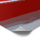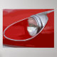 Detaljbild av E-TYPE JAGUAR-strålkastare med röd målning och kromtrim