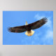 Foto av en örn som flyger mot ett starkt blå himmel med några små moln, dess vingar är utsträckt. Detta är ett bild av ett moget örn under flygning som har tagits i British Columbia, Kanada, som har en hög koncentration av denna stora våldtäktsman. En flygörn är en fantastisk att se!