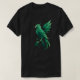 Detta illustrerar en stor örnliknande fågel designad med ett modernt, futuristiska estetiskt bedövningsmedel. Fågelns fjädrar liknar glödande löv och symboliserar harmoni med naturen samtidigt som man behåller ett elegant, geometriskt stil. Det går på ett skickligt sätt mot gren, med dess vassa ögon tittar nedåt, med kraft och vaksamhet. Under gren verkar en liten mus vara lugn och orädd, vilket understryker balansen mellan rovdjur och ber. Den djupa bakgrunden till grönten, som är full av subtila, glödande partiklar, förstärker mystik och lugn, ge teckningen en harmonisk blandning av makt, elegans och naturskönhet.
