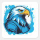 A detailed image of an eagle set against a blue and white background, highlighting its powerful presence and grace.