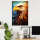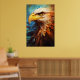 "Eagle Spirit" är ett slående digitalt verk som fångar kärnan av det stora örn. I konstverket visas örnen i sin profil, dess ögon fokuserad, som förkroppsligar frihetens och styrkans anda. Örnans fjädrar blandas sömlöst in i den pulserande bakgrunden, en harmonisk blandning av blått och orange, som symboliserar himlar i skymningen.