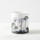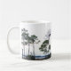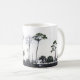 Njut av morgonkaffet i St. Marks Wildlife Refuge kopp. En svart vit silhuett av kustlandskapet, inklusive ett örnbo.