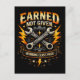 Crossed wrenches and crackling lightning celebrate grit, skill, and the pride of hard work forged through effort.