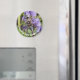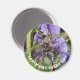 Gör jorddagen varje dag! Rund, dekorativ magnet för hemmet eller kontoret med fotobilden av en färgfull Blue-Eyed Darner-dragonfly som vilar på lila blommor. Markera din magnet-storlek.
