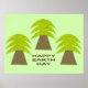 Den här poster innehåller en bild på tre träd som liknar handflatan träd med stora gröntar med spetsiga spetsar och en skarp brunbrun träd. Det finns ett budskap i brun text att se ut som jord under träd. I meddelandet står det att Lycklig är världens dag.