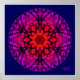 Kaleidoskopisk digital design från ett foto av en vintersolnedgång bakom träd.