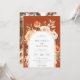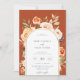 Elegant ördig botanisk blommigt från hösten, bröllopsinbjudan. Arch ram med gyllene accent och samordnande av terracotta orange färg bakgrund. Inbjudan innehåller chicens typografi och stil-blandning av kalligrafi och fetstil. Fullt utfaller ett enda fotoutrymme på baksidan.
