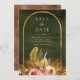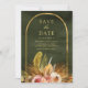Earthy Blommigt Arch Guld Sage Grönt Bröllop Spara Datumet