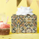 Produkten har fantastiska mosaikbilder med mönster och skarpa toner. Utformningen är symmetrisk blommigt i mitten, utstrålande med löv, vinrankor och prydnadsformer. I paletten färg ingår nyanser av grönt, beige, brun och guld som skapar ett naturligt och harmoniskt utseende. Den övergripande strukturen gränsar till ett rektangulärt ram som består av små plattor, vilket ger en känsla av fullständighet och elegans. Skräddarskapet är detaljerat och sofistikerat och kombinerar geometriskt och organiskt inslag.