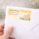 A soft watercolor sunshine safari design featuring a radiant daisy sun, golden clouds, and adorable baby elephant and giraffe artwork. The warm yellow and cream palette pairs beautifully with the popular “Here Comes the Son” baby shower theme. This bright yet gentle layout adds a cheerful finishing touch to envelopes while keeping a clean, modern look that prints clearly and elegantly.