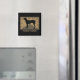 Den här funkyn består av tre trätoner, jordtoner. Hund aveln silhouette är i mitten, med radikala vinklar i bakgrunden. Nedan är rasen namn. Coola Rhodesian Ridgeback-gåvor till hundälskare.