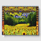 Jordlig solros gjord av kollage av blandade medier av solblommor och retro-tyg. Underbar vintage för älskare, solros älskare, blomsterbarn och bikupor.