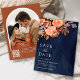 Earthy Terracotta Blommigt Bröllop Photo Navy Blue Spara Datumet