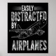 Easily Distracted By Airplanes Funny Plane Lovers Poster