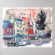 En vacker gatuscen från West King Street, East Berlin, Pennsylvania, med titeln "East Berlin Happy". Denna högkvalitativa reproduktion fångar en vårdag i april med starka färger och hemstadsflärd. De äldre byggnaderna och det vänliga städsegröna trädet välkomnar alla till staden. Originalet utfördes av Larry Lerew med vaxkritemodstånd och akvarellfärger på akvarellpapper. Denna reproduktion kommer att fylla ett rum med värme och karaktär. Njut, Larry