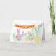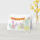 Funny bunnies and chicks are gathered on a hill with their colorful Easter eggs. Change the greeting inside, or add your name, to make this card truly unique.