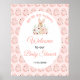 A charming Easter‑themed baby shower welcome sign featuring a sweet bunny surrounded by soft pink floral eggs. The patterned background adds a festive spring feel, while the central layout keeps the event details clear and elegant. Perfect for celebrating a mom‑to‑be with an Easter twist, springtime palette, and gentle woodland charm.