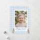 Celebrate Easter with a sweet and personal touch with this Happy Easter photo card, featuring a soft blue watercolor gingham design and adorable baby bunny accents. The front includes a large photo frame for your favorite picture, and the “Happy Easter” greeting and sender line are customizable, making it a lovely way to send a personalized Easter message to family and friends.