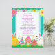 Add your child's name to this customizable letter from the Easter Bunny. On the back is some fun questions for your child to answer. Cute pink, teal, yellow and green letter with Easter eggs, bunny, carrots, flowers i pastel colors.
