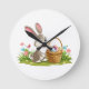 Cartoon smiling Easter bunny with a basket full of Easter eggs