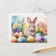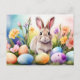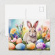 Easter Bunny with Spring Flowers, Painted Eggs Helg Vykort