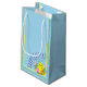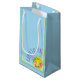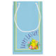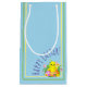 An adorable baby chick with Spring flowers and colorful Easter eggs is the star of this design. The blue background, which you can customize, has a pastel green and yellow border. The 'HAPPY EASTER!' text is in a deep purple and it can also be customized.