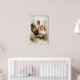 Easter Chicken Rooster Flowers Printable, Vintage Painting, Digital Nursery Print