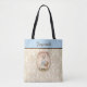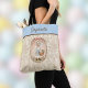 This charming spring tote bag features a charming Easter "grandmother" goose in a gingham apron, carrying pastel Easter eggs. She's surrounded in a pastel tile design on an ornament with a coquette style bow. Some might even refer to her as a vintage thrifted goose. The whimsical pastel image is placed against a beige and cream "textile" style damask pattern, and your name appears at the top against a block of soft blue. This "cottagecore" style tote bag is great for egg hunts, for shopping for Easter dinner, or carrying your gym clothes, or whatever you need to tote.