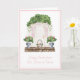 This Easter card has a watercolor front door with an easter basket on the front porch with text that says "Happy Easter from Our House to Yours." Colors used include olive green, pink, grey, and brown. All text is editable to meet the needs of your event.