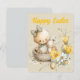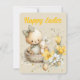 Easter greeting card decorated with flowers, ribbons and eggs.