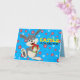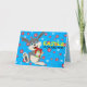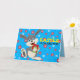 Postcard with Easter bunny and flower backround in blue. Modern and artful design. "Easter is on the way" printed.