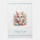 This kitchen towel is shown in white with a festive Easter bunny print.