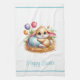 This kitchen towel is shown in white with a festive Easter bunny print.