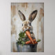 Easter Rabbit In Bucket Of Carrots Print, Spring Bunny Carrot Printable Wall Painting, Rustic Printable Vintage Poster, Nursery