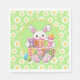 A Green Spring Paper Napkin Filled With Daisies And A Cute Bunny With A Colorful Happy Easter
