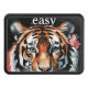 Kraftig tiger och ord "Easy" på en svart bakgrund. Den här snabba designen lägger till en vild som ännu inte har lagts tillbaka.